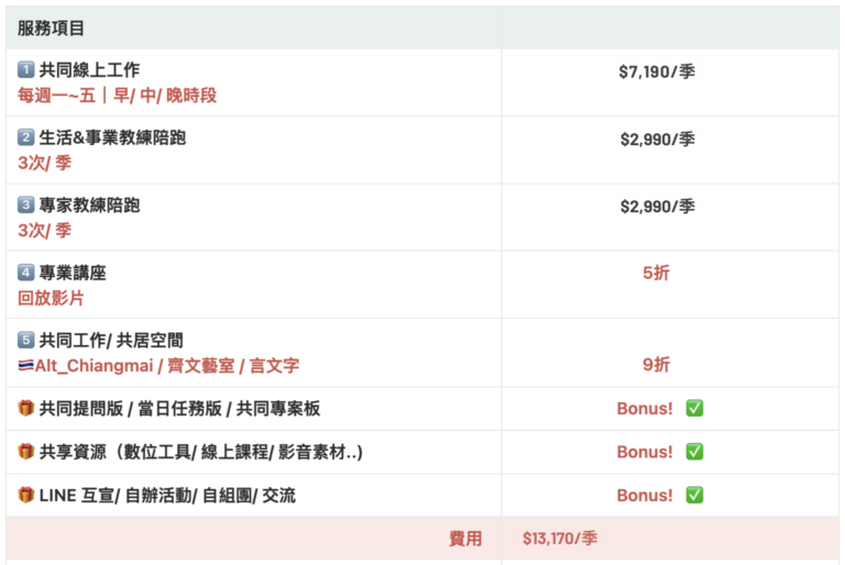 - 數位遊牧/ 自由接案相關限時優惠,如課程、國際/台灣活動等